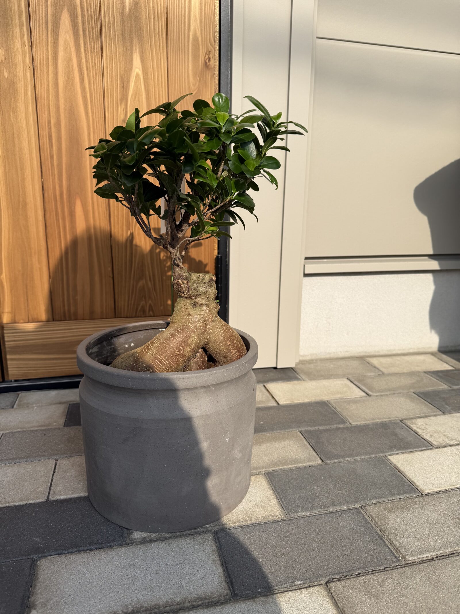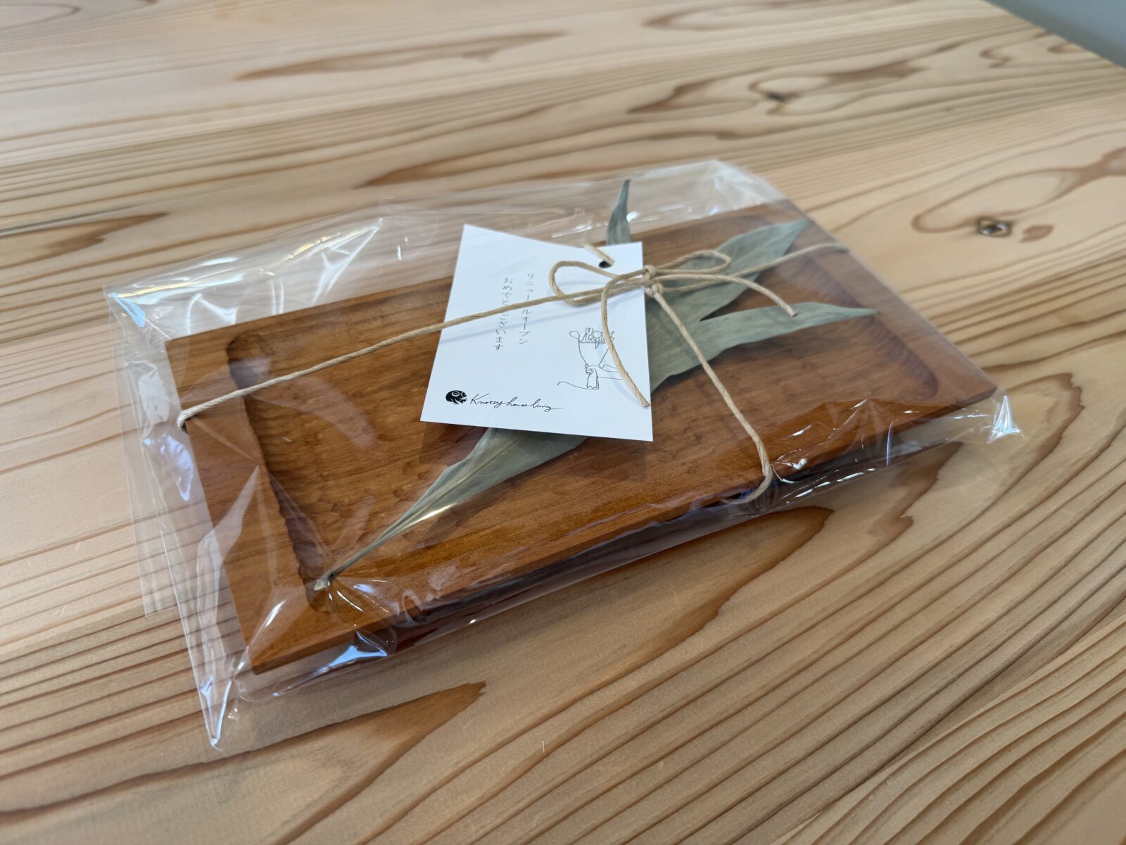 ノッティーハウスリビングからの開店のお祝いは”欅のトレー”と”ガジュマル”