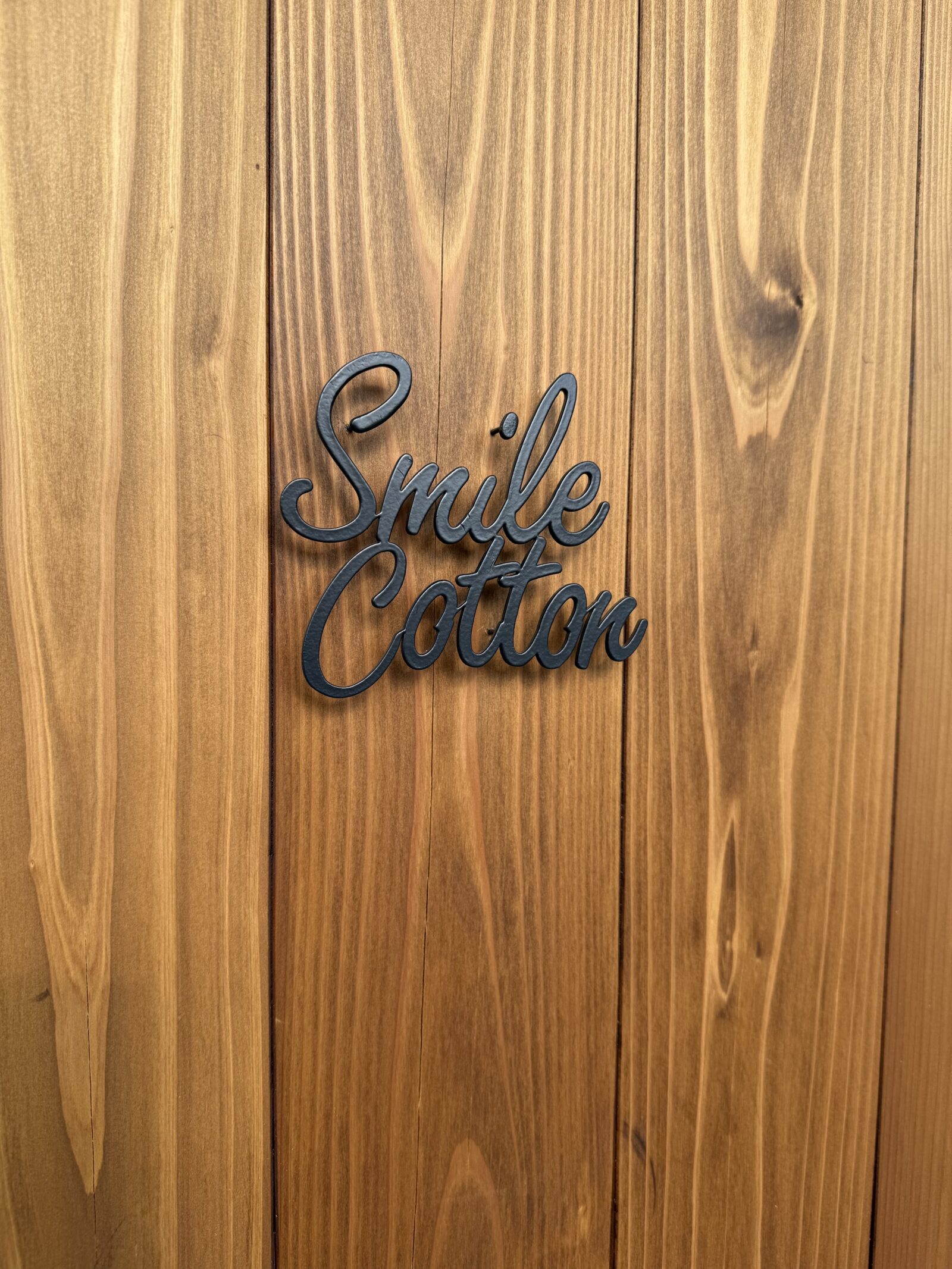 アイアン製のSMILE COTTONサインもちょうど良い大きさ!