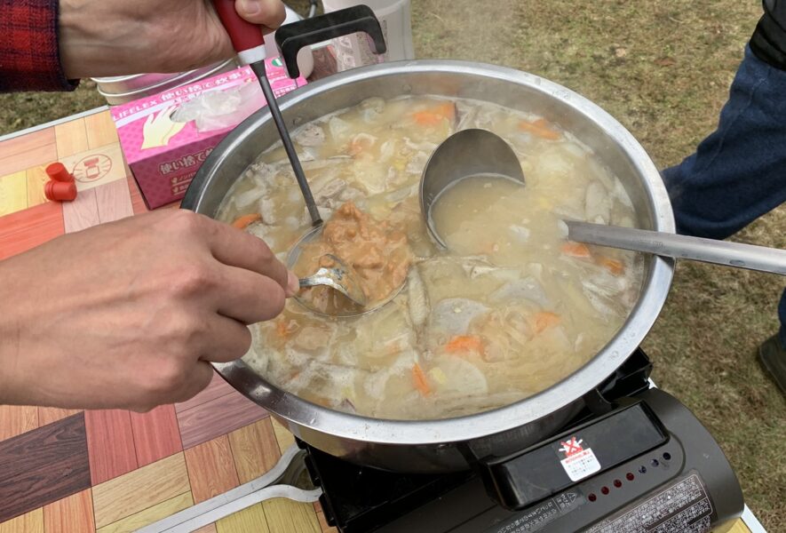 かぶとの森農園で採れた野菜の具だくさんお味噌汁をふるまいます