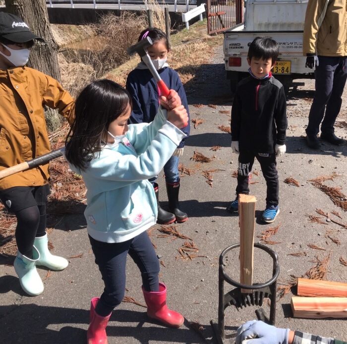 お子様も安全に薪割り体験ができますよ。