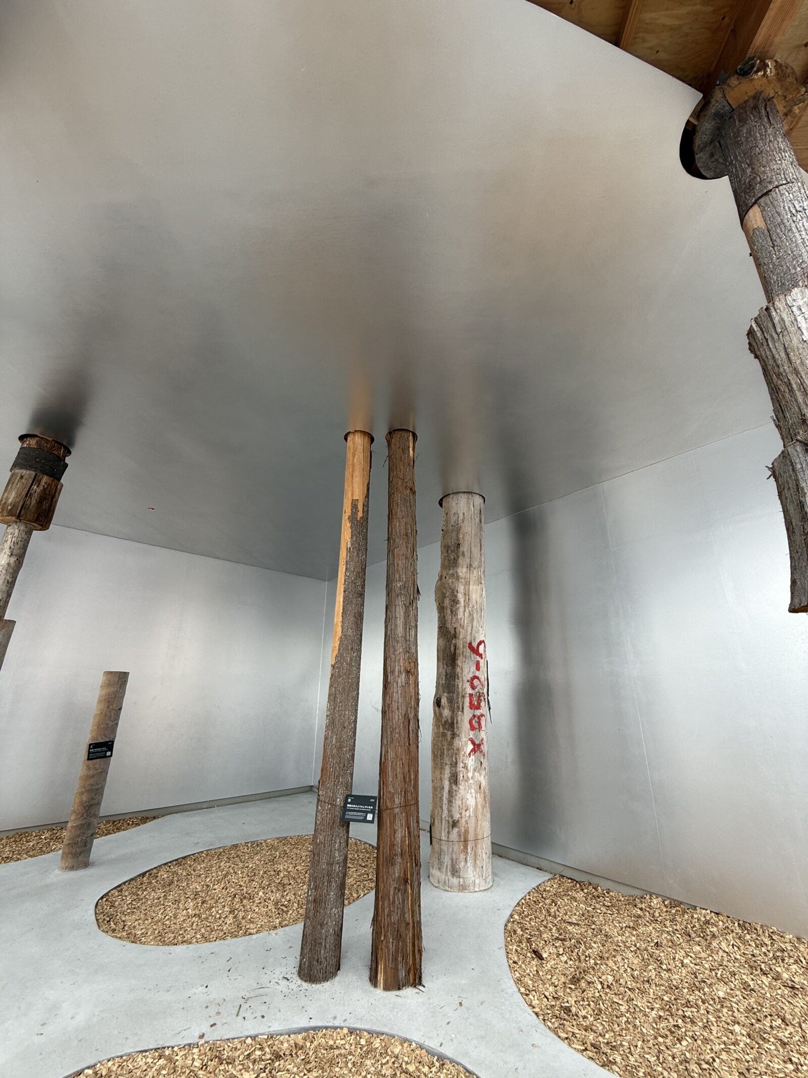 ナノメートルアーキテクチャーさんは全国から様々な理由がある”困った木”を活用して、自身が設計したサテライトスタジオの屋根を支えるという重要な役割を万博という大舞台で大役を担わせました。