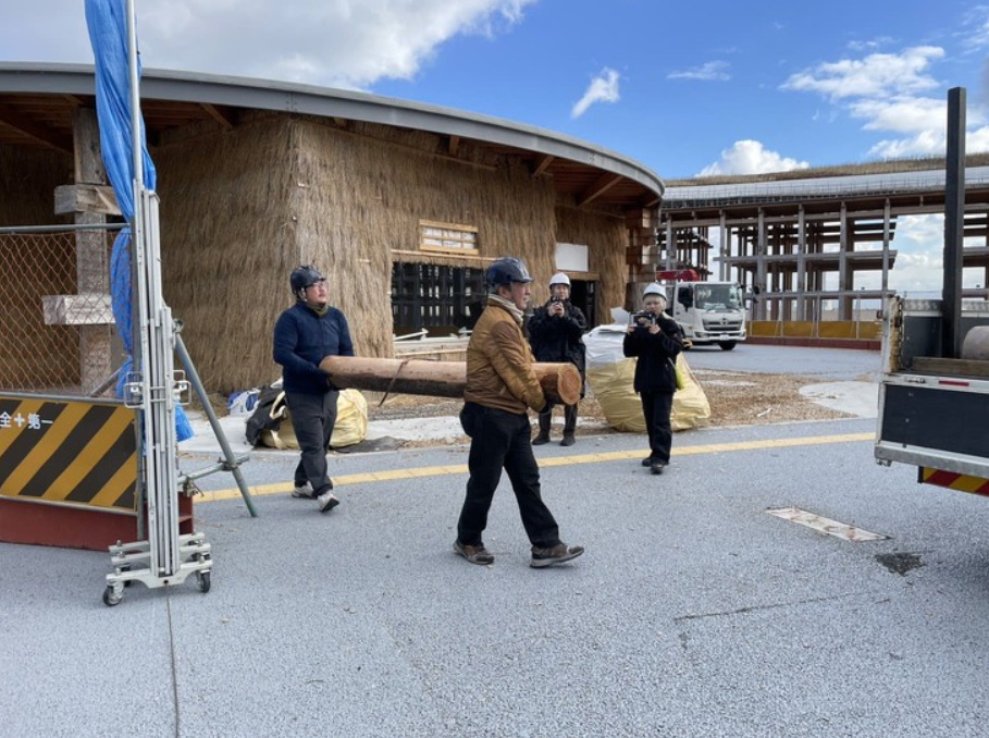 廃棄されるはずの木材に新たな価値を付けて再び全国に還元したいとナノメートルアーキテクチャーさんの呼びかけにより、私たちは万博会場まで木材を引き取りに行かせていただきました。