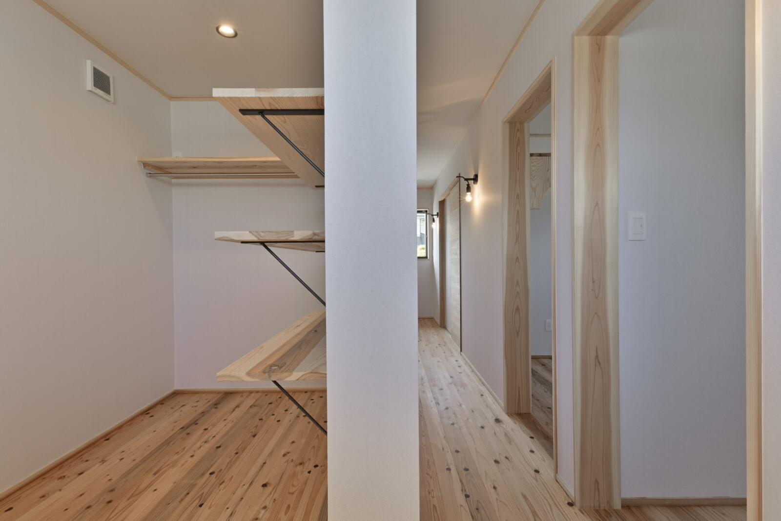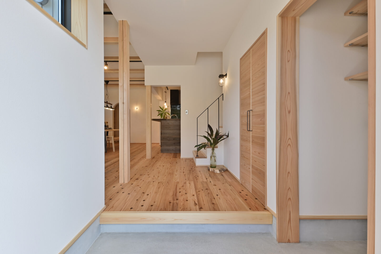 LDKと仕切る建具をなくし、オープンスタイルの玄関。